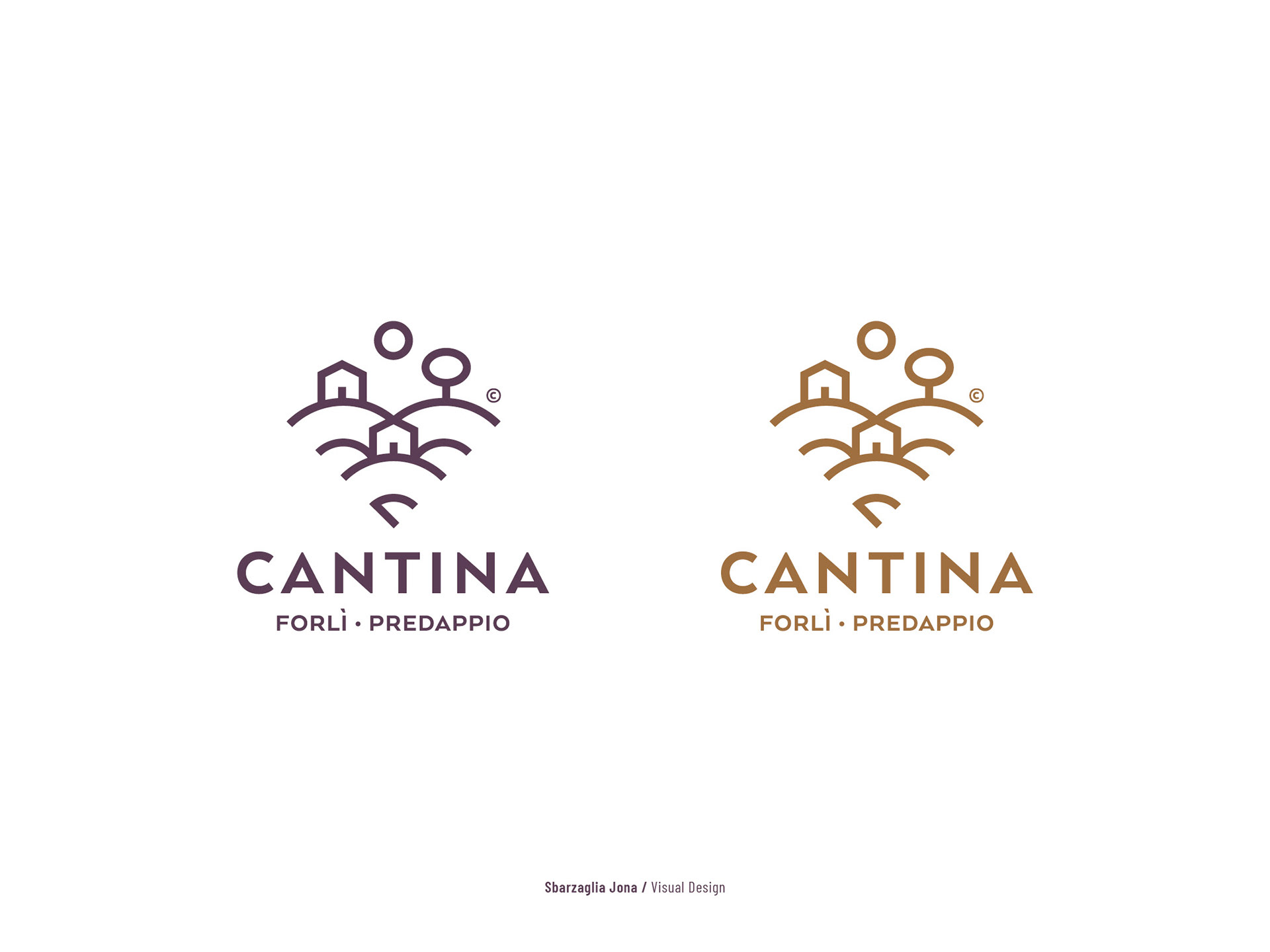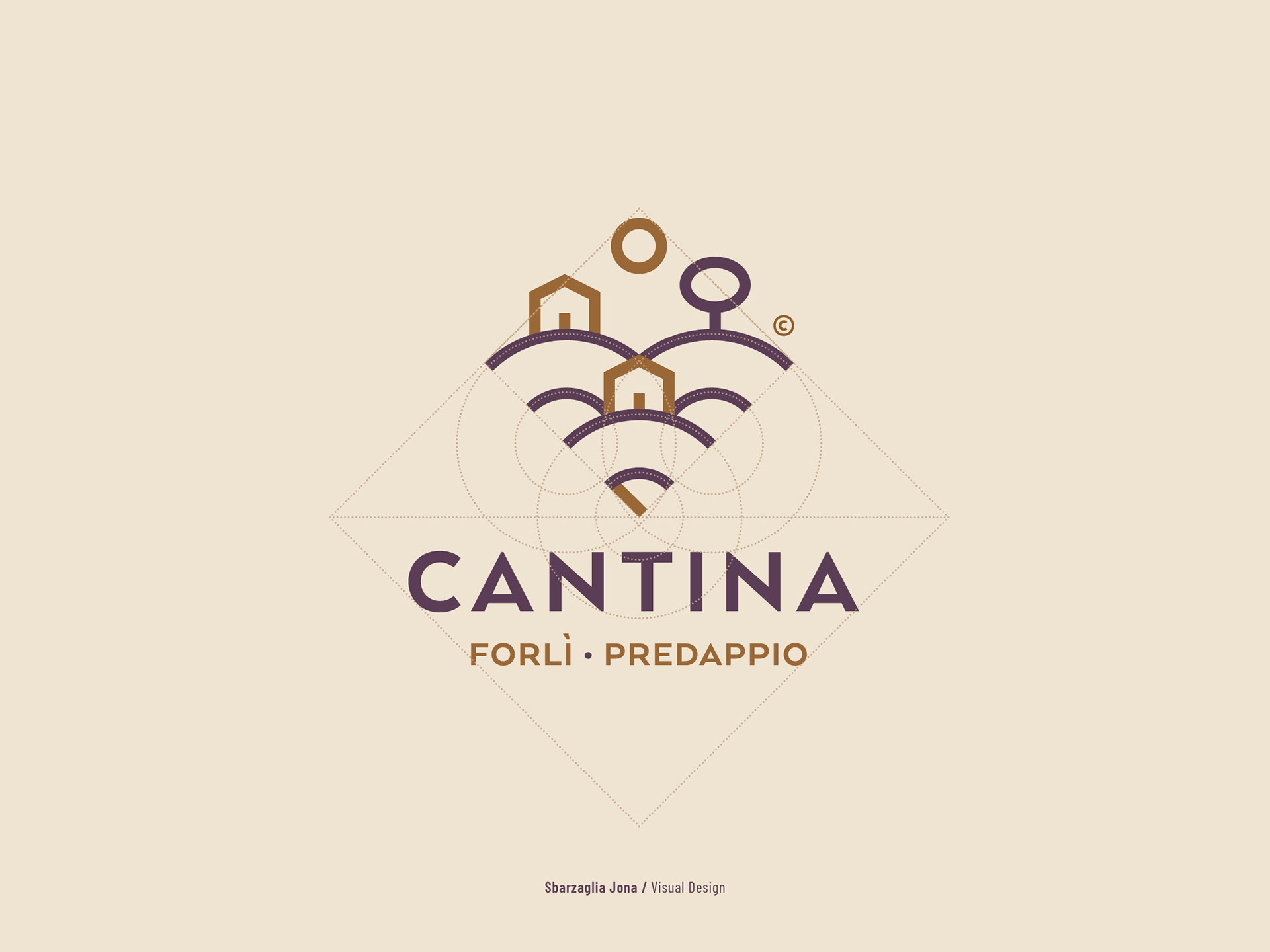 Il marchio richiama le 2 città Forlì e Predappio, il territorio e le colline romagnole da cui la cantina raccoglie le uve. La forma a grappolo o a V del logo confluisce nel nome. I colori sono quelli dell’uva e della terra.