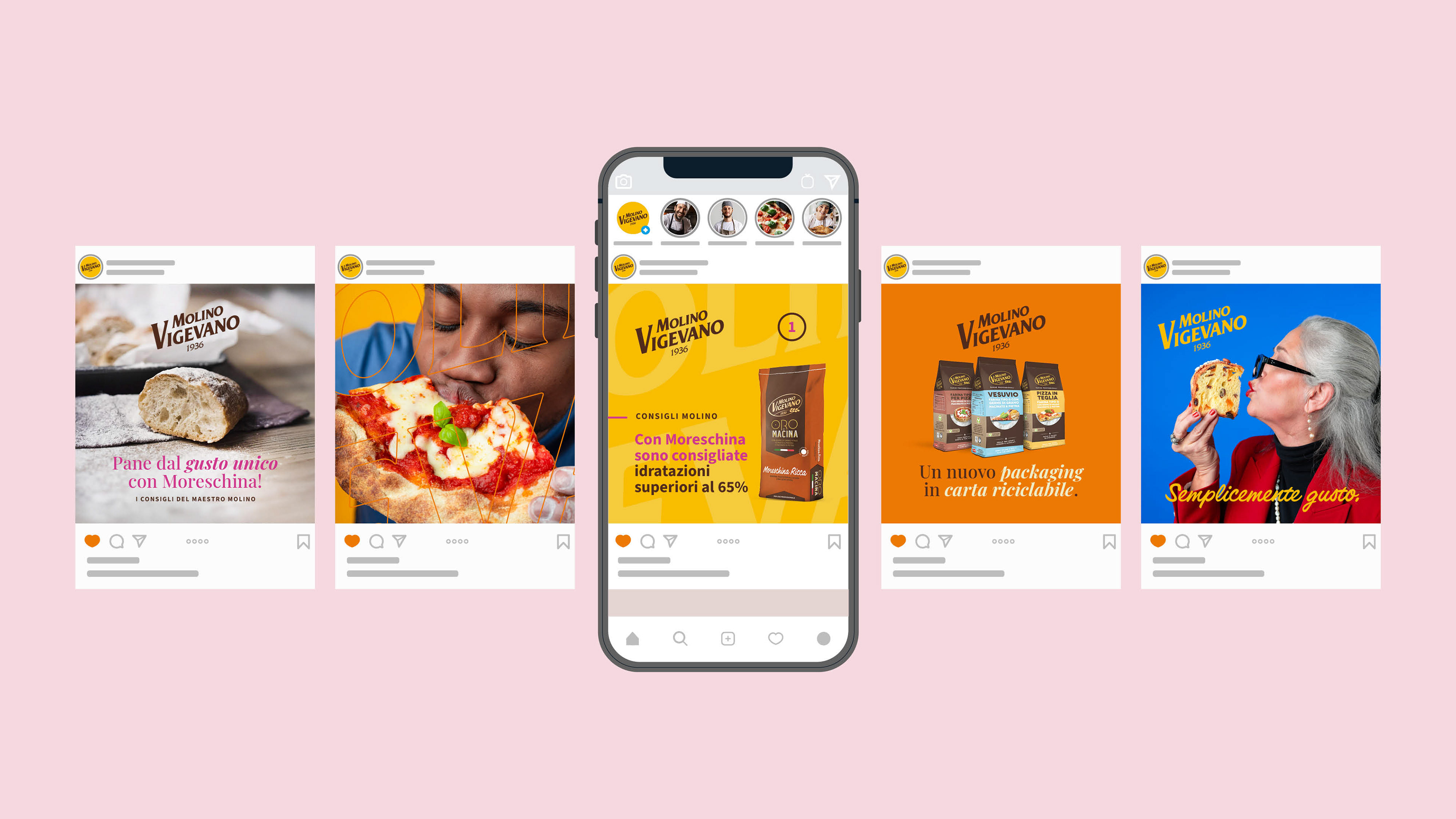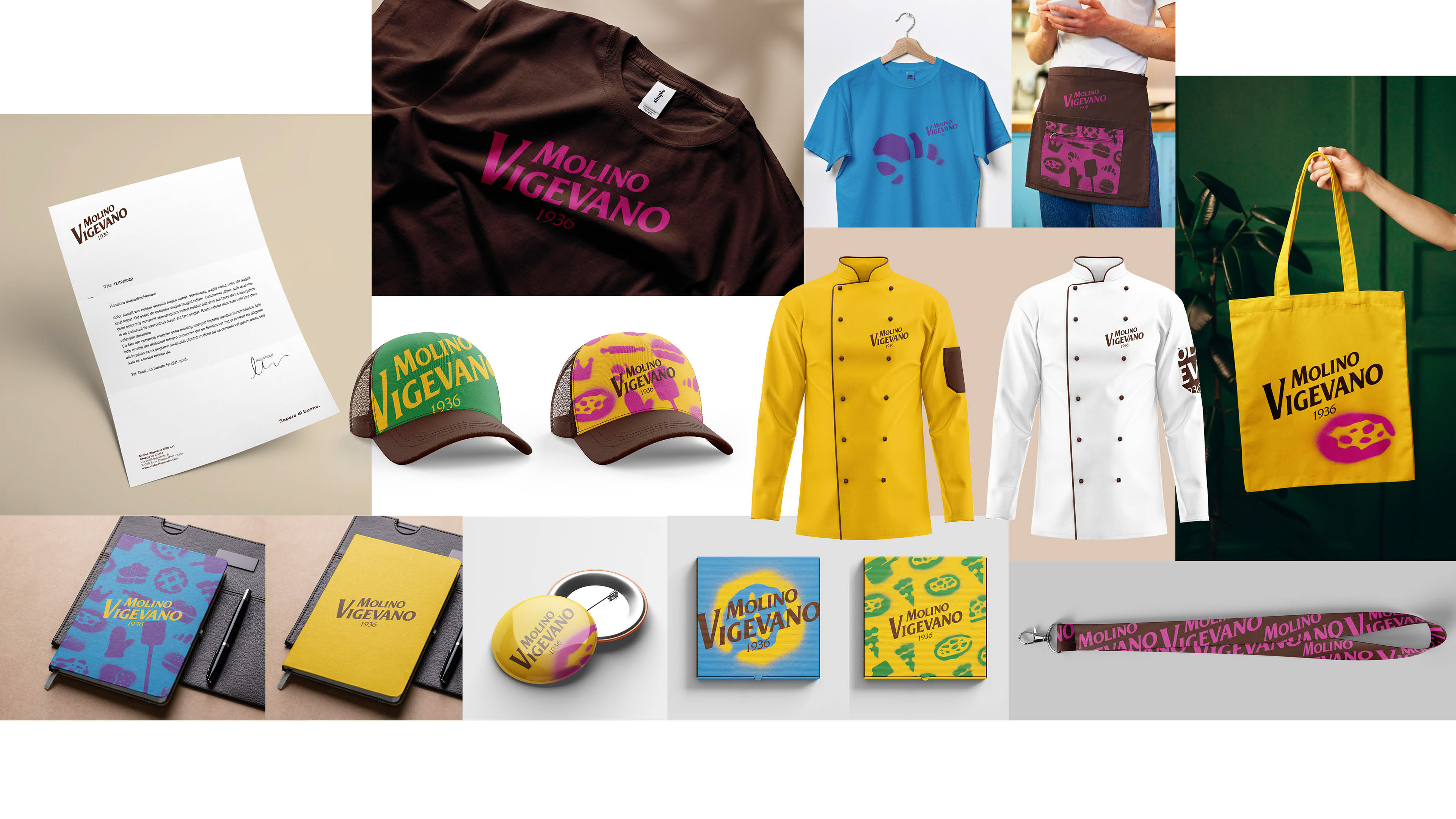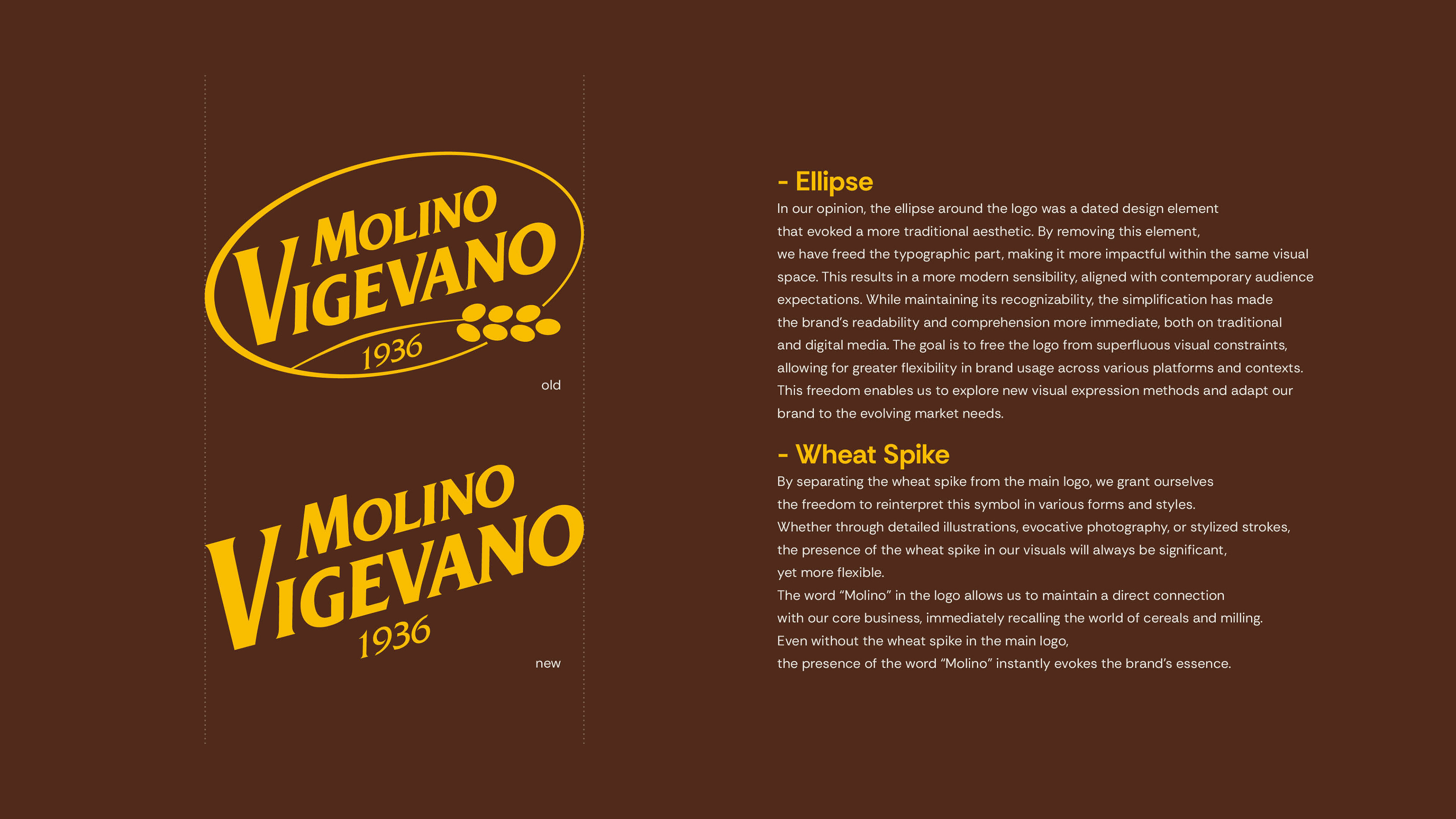 A Rebranding That Enhances the Brand’s Essence This brand’s rebranding was driven by the need to evolve its image without losing the distinctive values that define it: the taste and aroma of its flours, the value of time for artisans and professionals, and a direct relationship with customers. The goal was to make the brand more contemporary, accessible to a wider audience, and perceived as a true ally in daily work. The Key Updates: A more essential and modern logo: By removing the ellipse, the typography becomes sharper and more readable, maintaining brand recognition while adopting a more contemporary visual sensibility. A more versatile wheat spike: Separated from the main logo, it becomes a flexible graphic element, adaptable to different styles and contexts without losing its connection to the world of flour and milling. Stencil illustrations: A distinctive visual language that combines art and materiality, evoking the lightness of flour and the artisanal touch of Molino Vigeva
